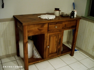 But the ex left one lonely piece of furniture hanging in the kitchen. It's nice - used, but nice.