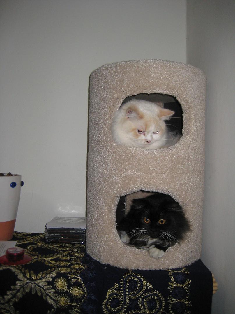 i have two cats, a female 2 year old persian and a male persian/himalayan 2 year old male...Itty Bitty and Wes....I love them both to pieces! Wes is technically my sister's but she's proven herself too lazy to care for him properly, so he is technically mine for now...Itty Bitty is pregnant too and about to give birth soon, if anyone would like a free Persian kitten after 2 months, please PM me...