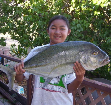 Yeah Lots of Mahi Mahi at certain times. Lots of Ulua [Jack Crevalle] as you can see. My daughter caught this one 3 days ago. 8 lb test. She caught it afterschool from pier here.