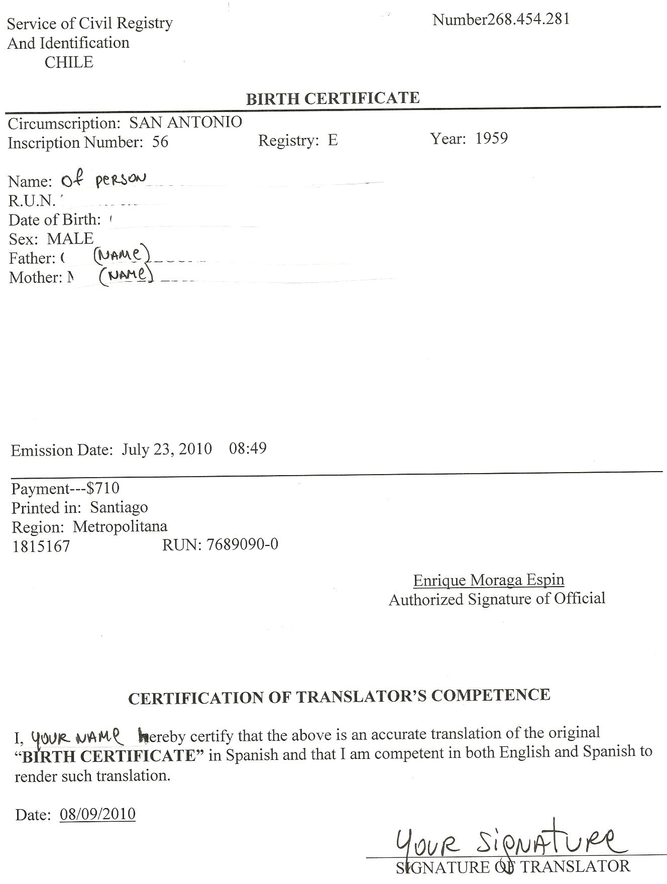 Here you go this is the birth certificate I translated for my husband. It is exactly the same except all info is in English.. let me know if you see it... I hope I did this correctly!