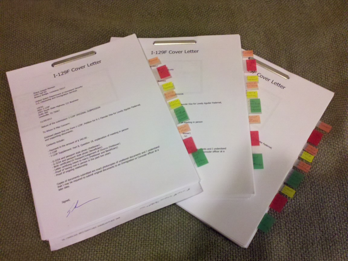 I am attaching a photo of my I129F packet just to show what I'm doing.
