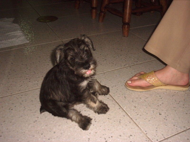 Se porta ESPECTACULAR y desde ayer nos tiene con la boca abierta porque YA SABE hacer su pipi y pupu EN EL JARDIN!!!! Y lo que tiene son 8 semanas. Y ya sabe hacer otras cositas tambien!!! De veras que la breeder los cria muy bien! Ni chillo anoche..nada!!! Y como yo estoy acostumbrada a lo dificil que es para ellos las primeras noches sin su mami, igual me paraba y lo chequeaba a cada rato. Tranquilitoy dormidito en el nidito que le prepare en su crate!!! :D Yo le compre un muneco que se llama Puppy Cuddle Pal, que basicamente es un muneco estripado que se mete en el microondas por 30 segundos y se pone calentito.. LE FASCINA!!! Yo me lo deje en mi piel un buen rato, para que agarrara mi olor, y lo agarraba y lo abrazaba y asi se quedaba dormidito. Provoca comerselo. Y luego me sigue por toda la casa y se me queda mirando.......ayyyyyyyyyy (L)