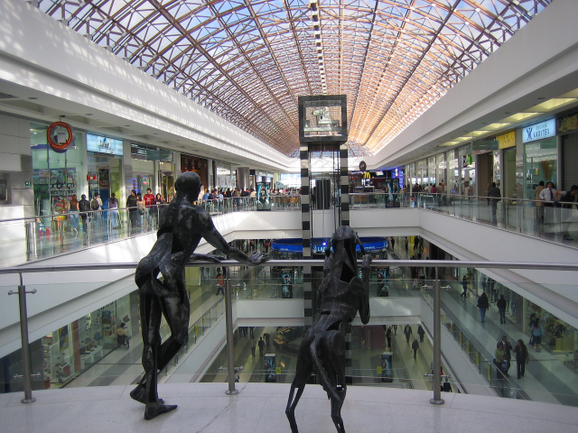 Yes the apartments in Colombia are not as large as the apartments in America. There are two strip malls close to the Apartment building. One in front and one behind. In fact, the bank just behind the apartment building is set up to deal with the American Embassy. There is El Coral, TGIF's and Crepes and Waffles only one block away. It is only 2 blocks from the American Embassy. It is also only a 15 minute walk to the largest mall in South America.( Grande Station).