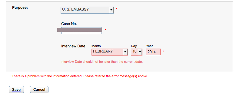 This may be irrelevant to many of you, but I was just wondering if anyone has tried to request CENOMAR/BIRTH CERTIFICATE to be sent to US Embassy in Manila directly? I tried doing so via https://www.ecensus.com.ph/Default.aspx . They had the option of sending it directly to US Embassy, however, one of the question is to enter your interview date. When I do so, an error comes up saying, "interview date cannot be later than current date." If I change it to current date, it will let me through, but then, will the document be in their hands on the ACTUAL interview date? screenshot below.