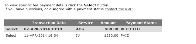 So i log on to ceac to print out the receipts for the IV and AOS payments to start assembling my docs that I will be taking at the interview and all of sudden on the summary page it shows N/A under AOS payment. So I click on it and it shows that AOS payments is rejected!!