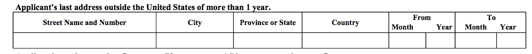 For my fiancé living in the UK, how would he fill this out? I know he will put his home address that he lives at now, and the month and year he moved in, but what should he put for the ending part, where it wants a month and year he stopped living there, but he is still living there? It won't let him type present, because it only allows for two characters in the first blank for a month, and four characters in the second blank for the year.