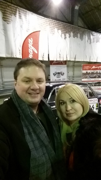 Good call April...attached is a picture of Elena and I at a car show (indoor!) over the holidays. I'm kinda embarrassed to post it because I'm overweight after my trip to Russia. lol Not to mention that I'm staring down and to the right while attempting to align the phone with our shining faces. Heck, I brought my running gear to Moscow but it snowed most everyday and thus the footing was horrible. Personally I don't push the envelope WRT injuring myself when in a foreign country, so I decided to forego running while there. Wished I could say the same about eating, but not so. Elena stuffed so much delicious food down my pie hole that it was unreal. Holiday food in holiday quantities dontchaknow. :D :D :D