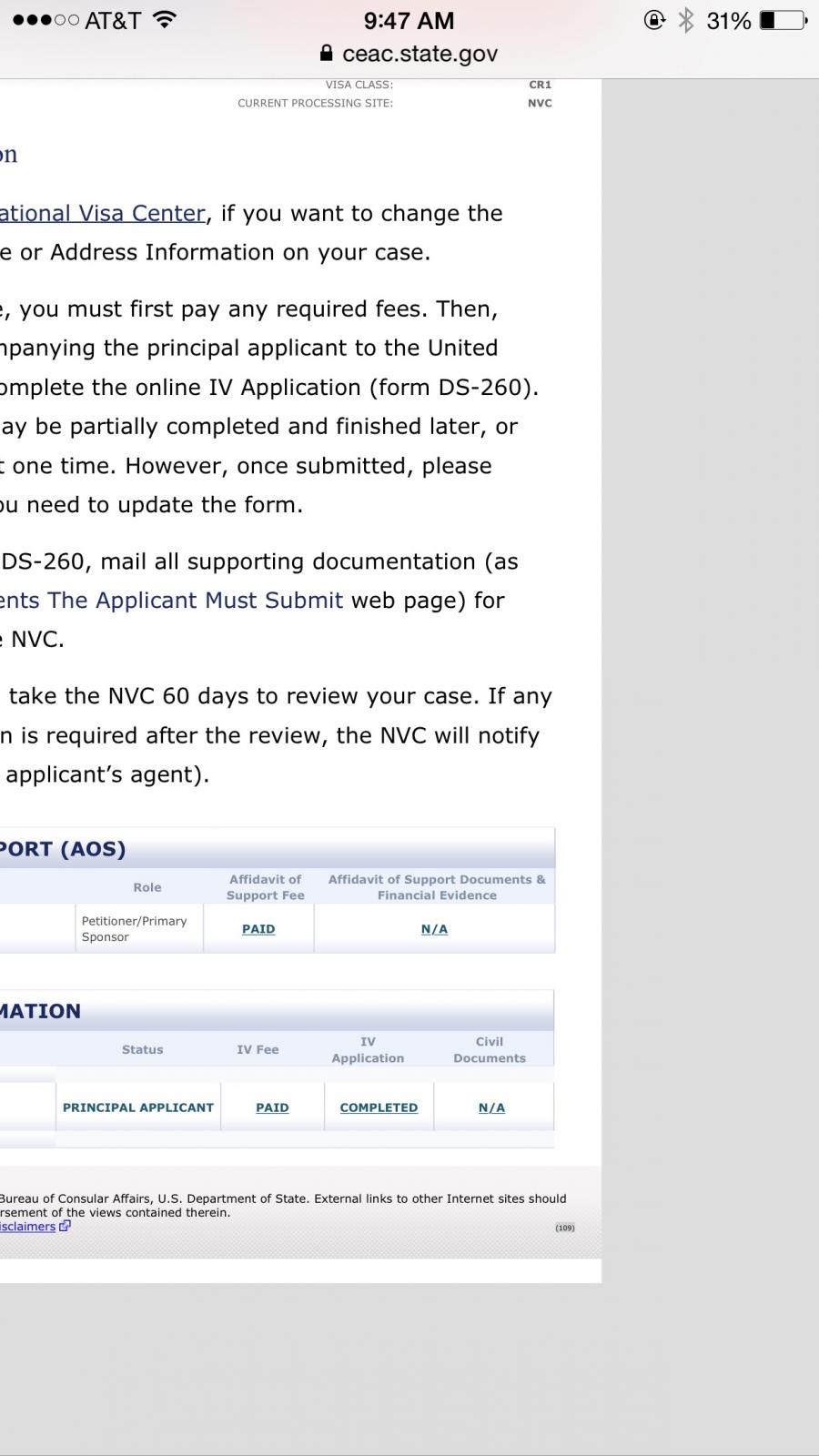 02/13/2015 - Got an email with NVC Welcome letter and AOS Invoice