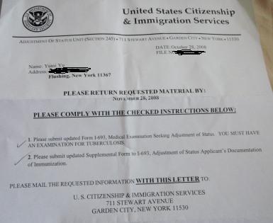 1.Please submit updated Form I-693, Medical Examination Seeking Adjustment of Status.YOU MUST HAVE AN EXAMINATION FOR TUBERCULOSIS