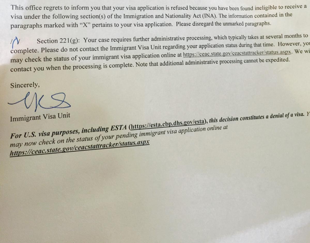 Result: Administrative Processing Result: Still administrative processing