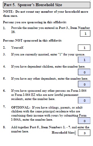 In my case my wife is sponsoring me, so the total household size should be 2 people for us.