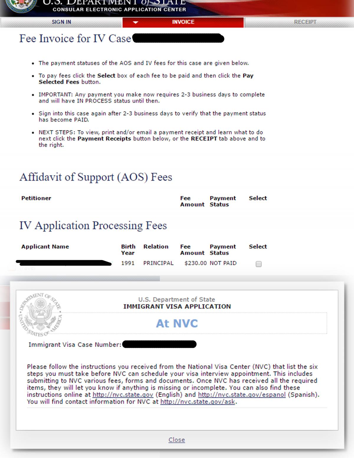 2015-10-05: NVC assigned Case number, Invoice ID & Beneficiary ID