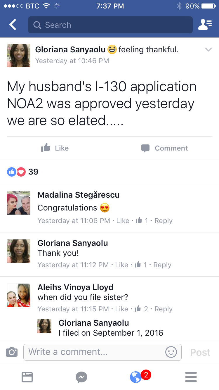 • I-130 filed - 9/22/2016