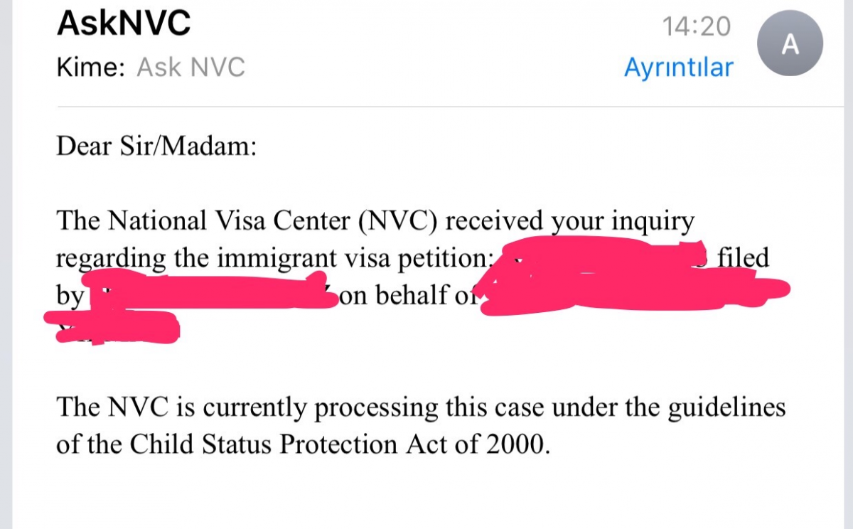 I asked to NVC: 'Is CSPA eligible for me?' and they send me this e-mail.