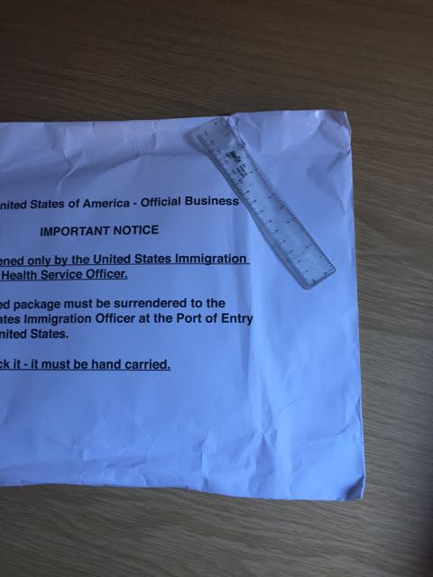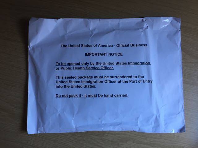 Maybe this is a stupid question, but what is in this white envelope? I assume your K1 Visa is not in there, I assume it's in your passport like all other visa's. Obviously you'll need your Passport/Visa to get on the plane, so what is in the envelope that you can't open?