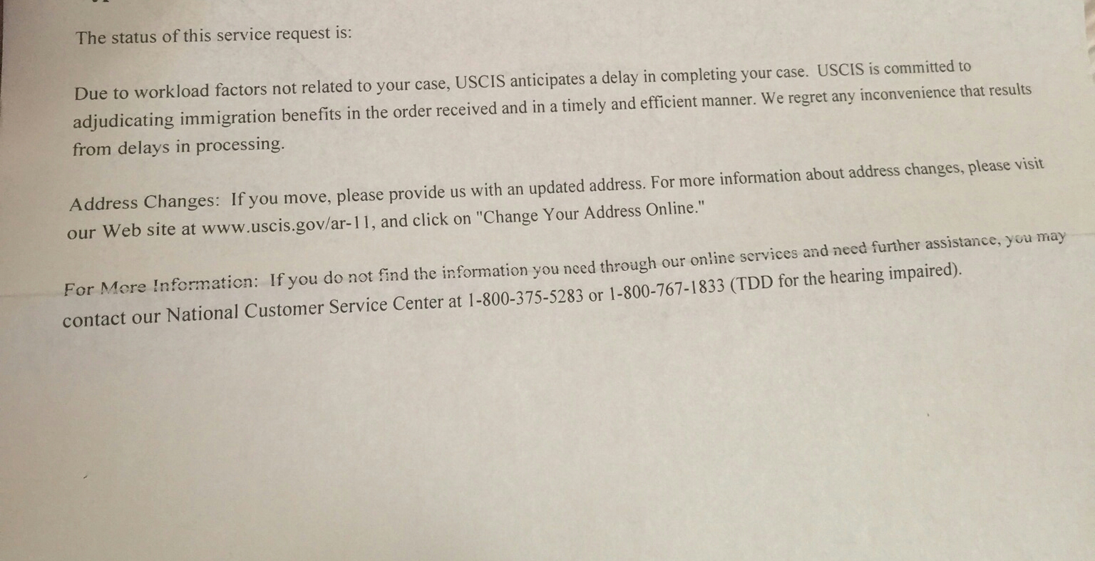• May 2.2019             -  No forward motion, we called again and despite there was an officer assigned to this service request nothing happened/ no extension. We filed an InfoPass and have an appointment for Monday 6th for passport stamp.