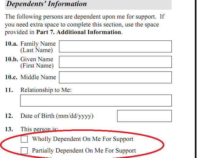 So in summary,if I must, I can certainly add all there of them in that section, but  I feel that I would be "lying" if I said that they're "wholly dependent on me for support" or even "partially dependent on me for support" in question 13, which not the case, as explained above.