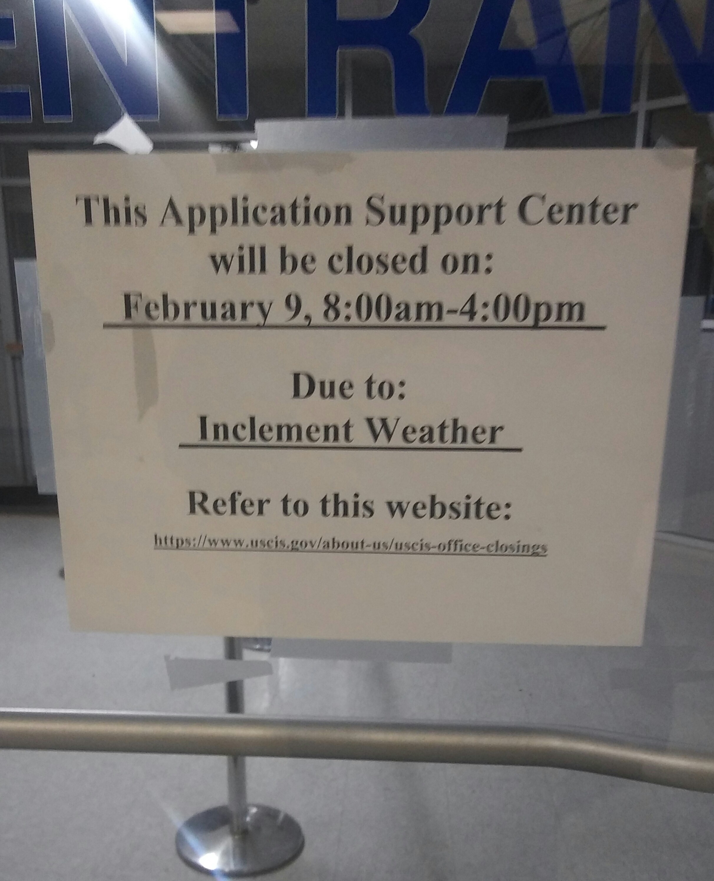 Well my scheduled appointment was today, got there for 9am...office closed all day due to the snow. Just a warning for anyone else booked in today, as there was no alert online etc.