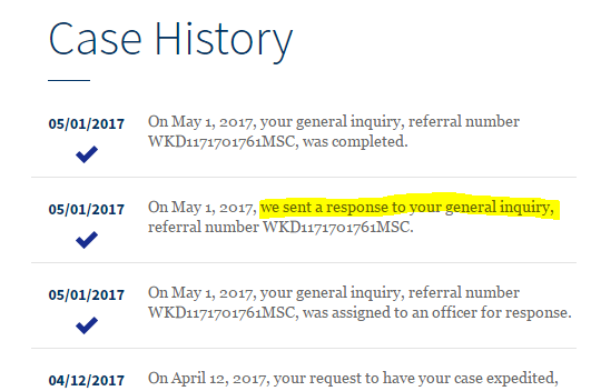 I requested an expedite on Monday the lady told me that somebody will contact me within 5 days.. my Case History shows the same - that they sent a response and "case is completed" ... I haven't received any email or phone call from USCIS. Schall I wait now till Monday and call them again?