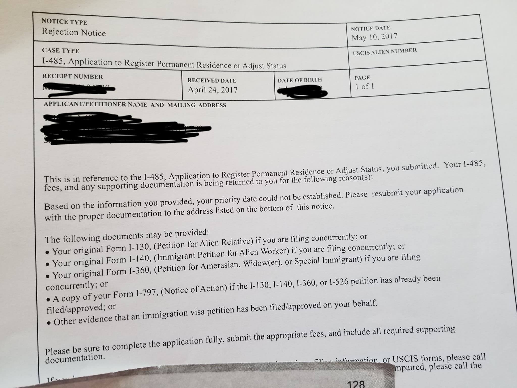 Long story short, I sent out my AOS package on 4/22, and it was delivered on 4/24. I received a text and an email notice with a receipt number yesterday, so I thought everything would be fine even though I only got 1 notification with 1 receipt number. This morning, I got this I-797C Rejection Notice in the mail along with I-485, I-765 and I-131. So, it means they only accepted my I-130. Based on what I've read on the notice, it seems to be they went through my I-485 before my I-130 was approved. Therefore, they could not find any of my I-130 approval on file. I will wait for the official Notice Receipt of the I-130 to be arrived, and I'll mail out the returned package again along with a copy of the approval notice.