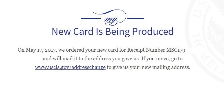 2017-07-14 - Status changed to "We ordered your new card.." for my I-485