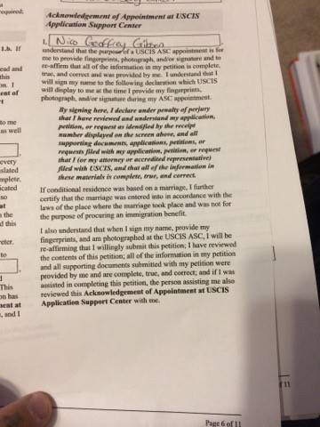 .. No im not im serious this is whats confuses us lol, on page8 Someone has to sign the acknowledgment of application center thingy for fingerprints and photos. and also on page 6 its the same exact thing, someone has to sign the acknowledgment again? ill take a photo