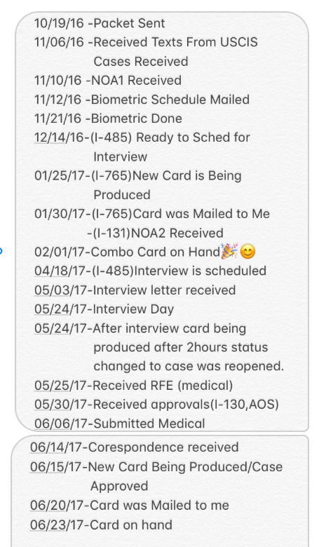 10/14/17: Biometrics appointment notice received, 10/25/17: Biometrics
