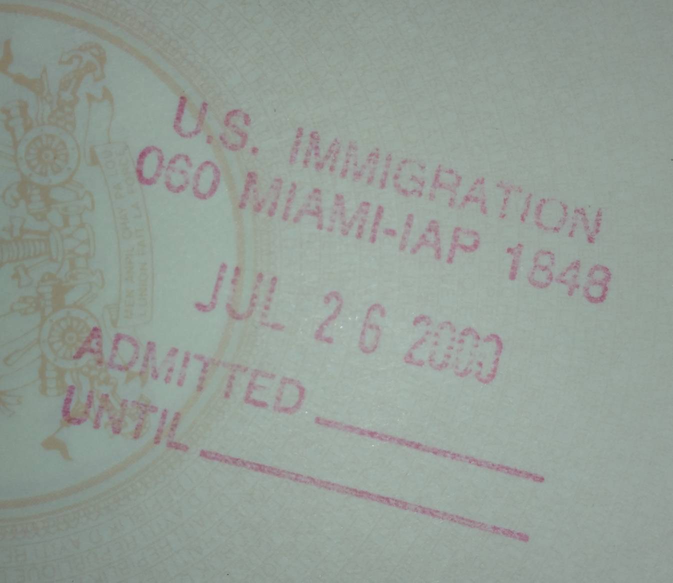 -My date of last entry was 07/26/2000 shown by the entry stamp on my passport (Attached)