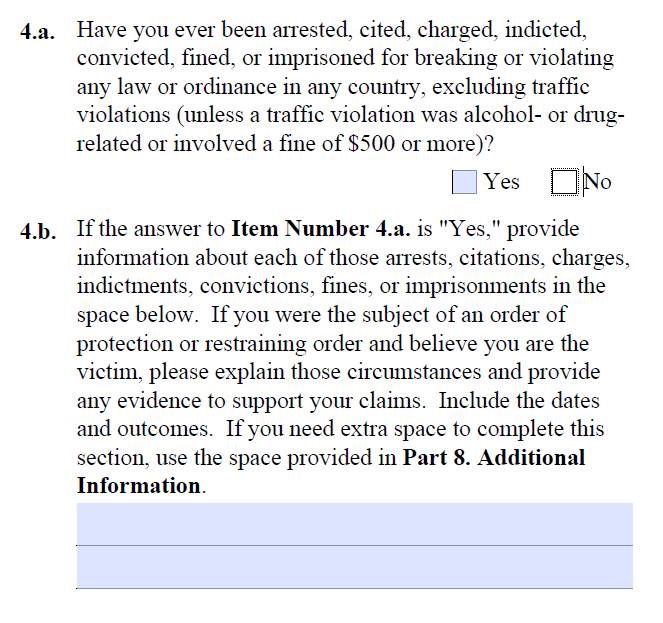 It's written pretty clearly there. If the traffic violation was involving a fine of $500 or more, mark YES and include information on it, including the tickets papers, and presumably, the receipt of payment for the fine.