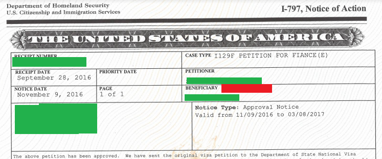 09/24/2016 - I-129F Packet Submitted, 09/26/2016 - NOA1, 10/27/2016 - RFE Received