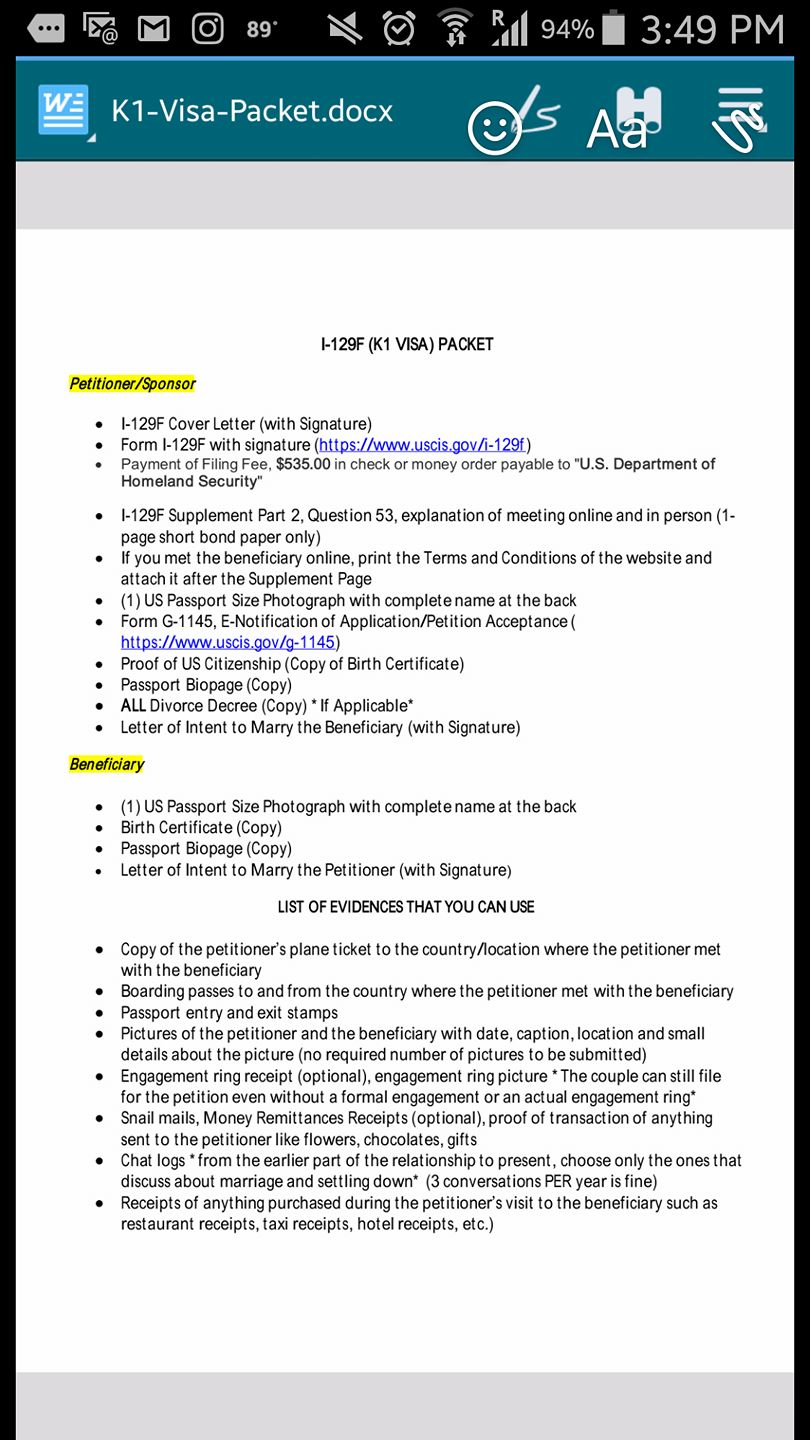 Our K1 Visa Process on our blog: https://happilyhaberlafter.wordpress.com/2018/04/21/k1-visa-process/