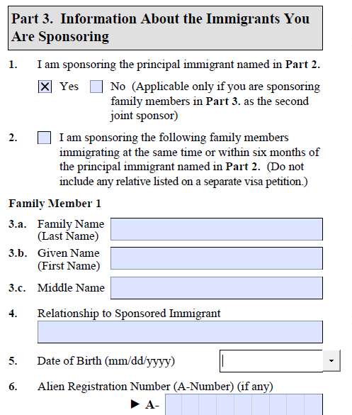 Hello! Does anybody know how to fill out part 3 and 5? I filed 2 separate I-130 form for my mother and my step-father. They will be immigrating at the same time.
