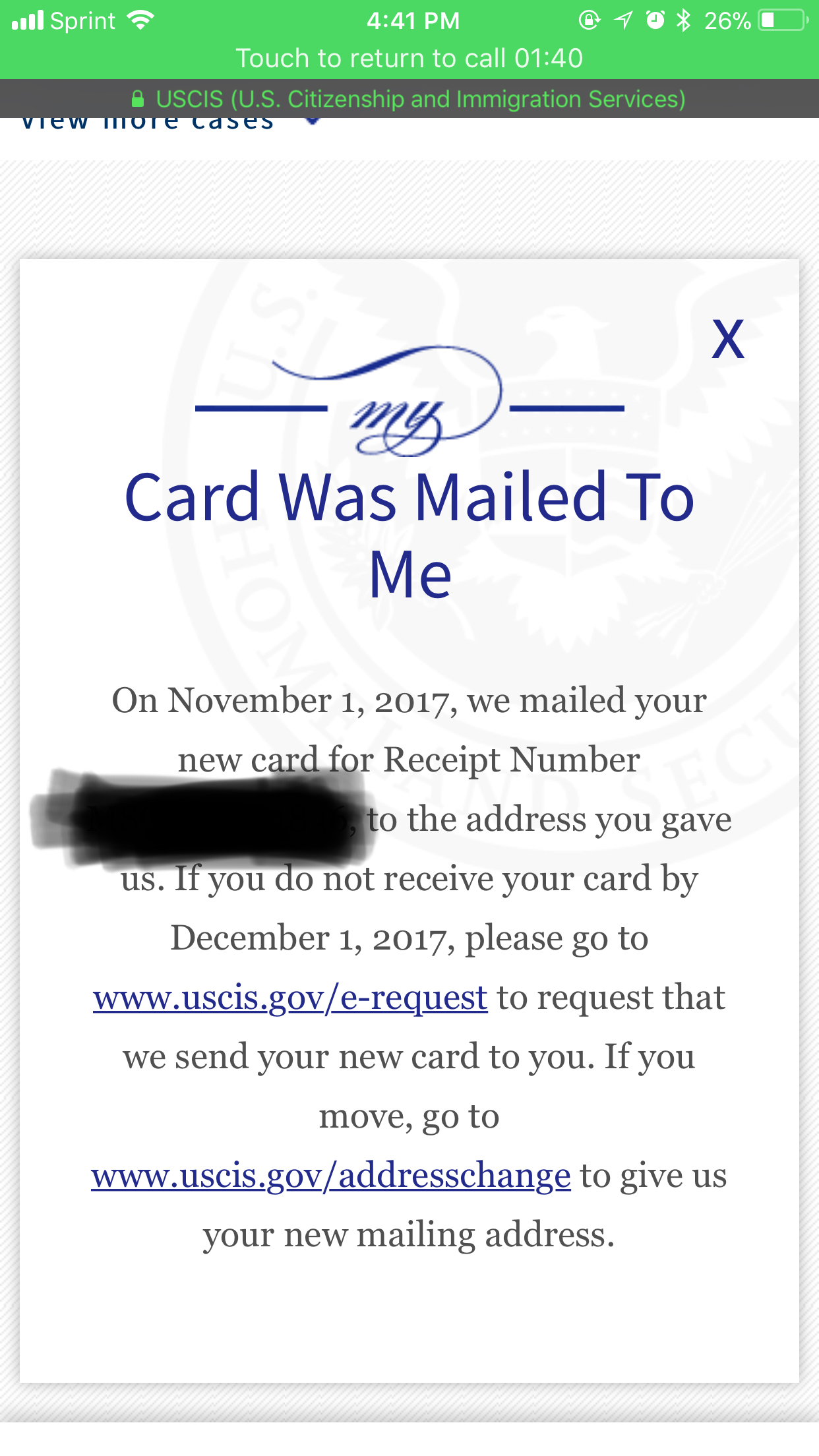 2/26/18  --- USCIS Mobile Status changed to "Card was mailed to me"