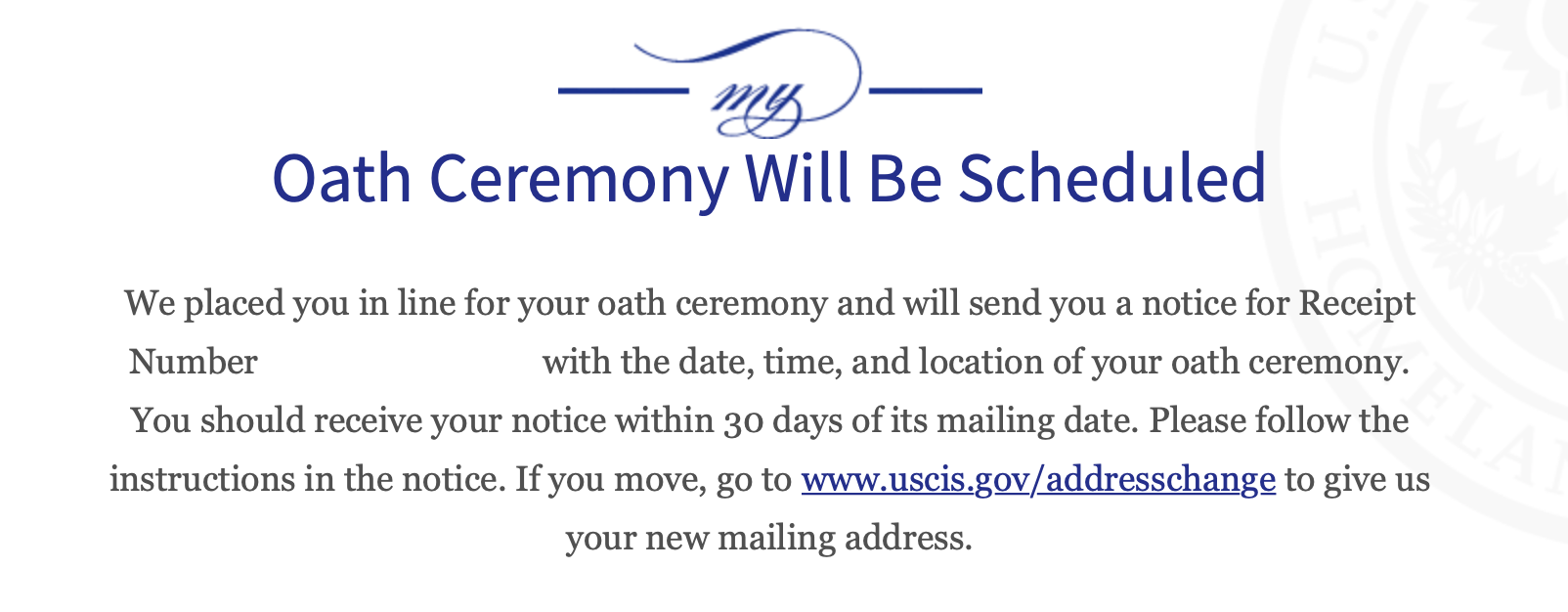 One more update, only two days after my interview, I already got my oath notification. It will be on July 24th at the St Paul Courthouse.