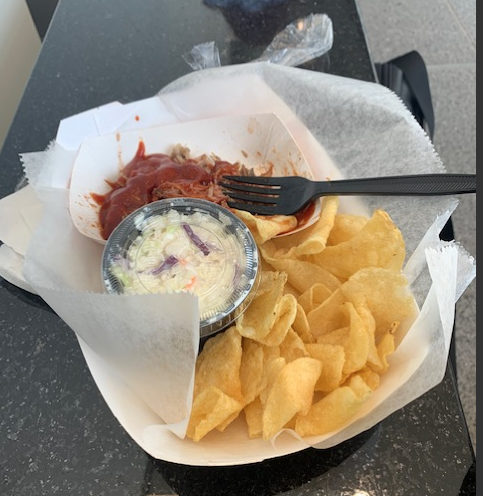 I got at the building at 11:30 AM and didn't wanna go right away and wait. there was a barbecue food truck right outside the building. So I decided to quickly have lunch. Nothing speaks like America than barbecue pulled pork. it was yummy
