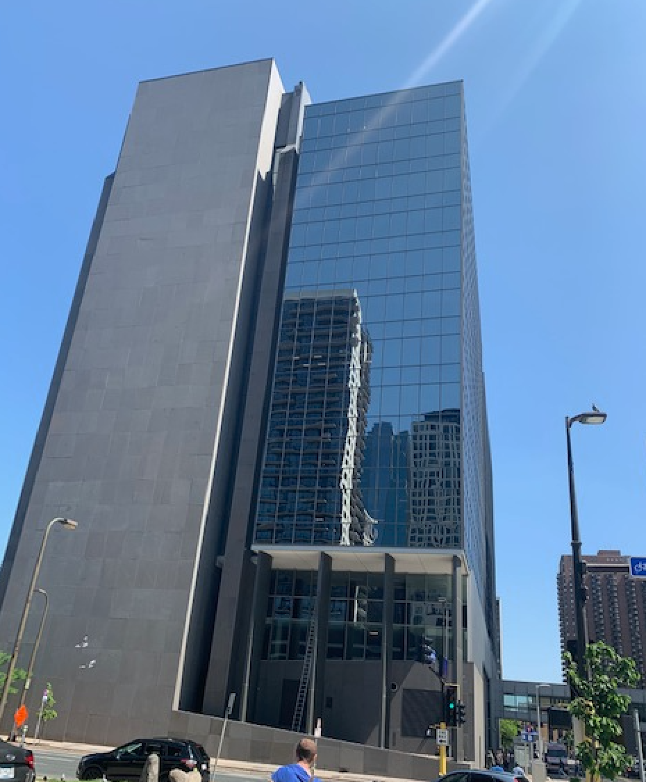 I work in Eden Prairie, but today, I went early. On Wednesdays I run with a run club downtown Minneapolis, so I just stayed downtown after that and then parked myself at Starbucks in City Center and worked from there for a couple hours. My interview was at noon, so at around 11 AM, I went back to my car, left my laptop in my car and started for interview location (250 Marquette Ave Minneapolis) -  my car stayed at City Center parking ramp but there is parking around it. This is what the building looks like: