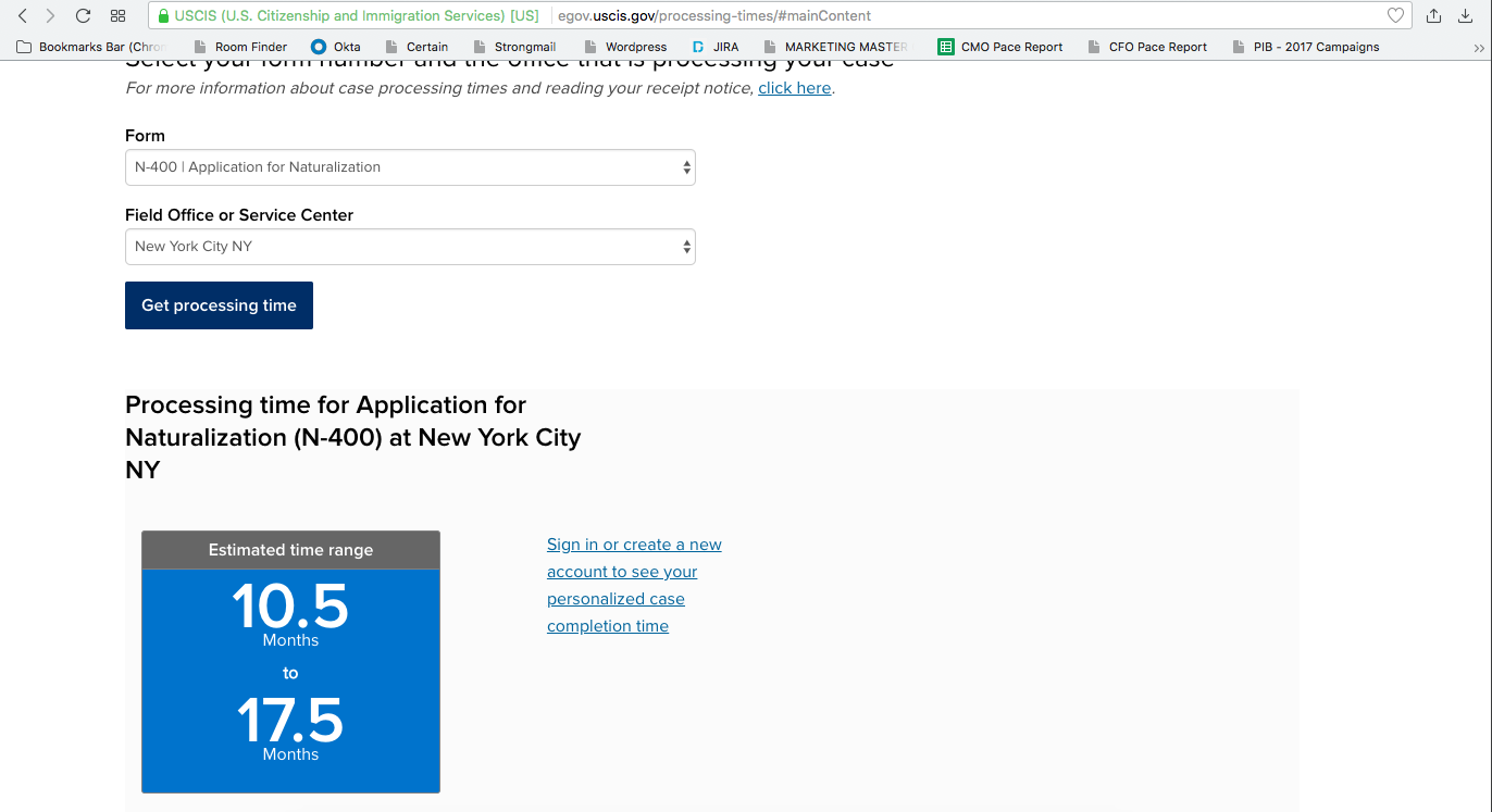 Login with your credentials and it will bring you to this page (see image below). As you can see for me it says "Estimated case completion time is February 2019 (11 months)". I hope this helps!