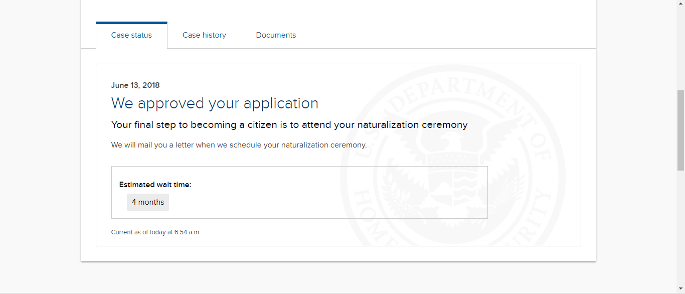 And then she said congratulations, wait for the letter with your invitation for the oath ceremony in about 3 weeks. She asked me if I had any questions and I said yes, I asked my question and she tried to answer me, she dialed a number and when she did not get an answer, she got up from her seat and went to get my answer. I really was more than happy in the way she treated me. She told me that if in three weeks I did not receive my letter I would call her by phone. Then she gave me a paper that said that I was recommended to become a citizen and her name was there. I am very happy with my experience.