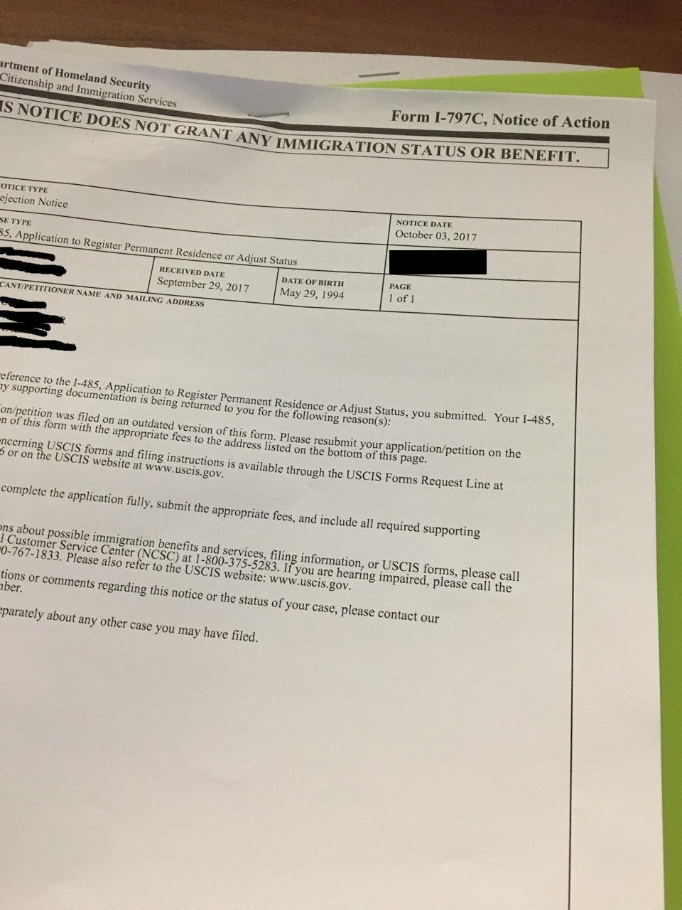 Day 49 - 02/10/2017: N-400 rejected again because incorrect payment amount.