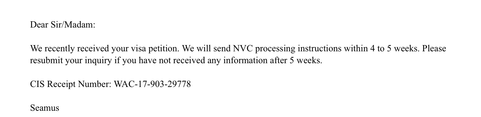 In the subject line of your email, please type the original receipt number from your I-130 Approval Notice. If you have more than one petition, send a separate email for each petition. Once we receive the copy of your approval notice, we will contact USCIS to find your petition.