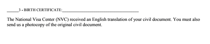 So this is what it says on the e-mail I received from NVC. I have photocopy of the original bc its in native language but is missing child's name however, the english translation has a name.