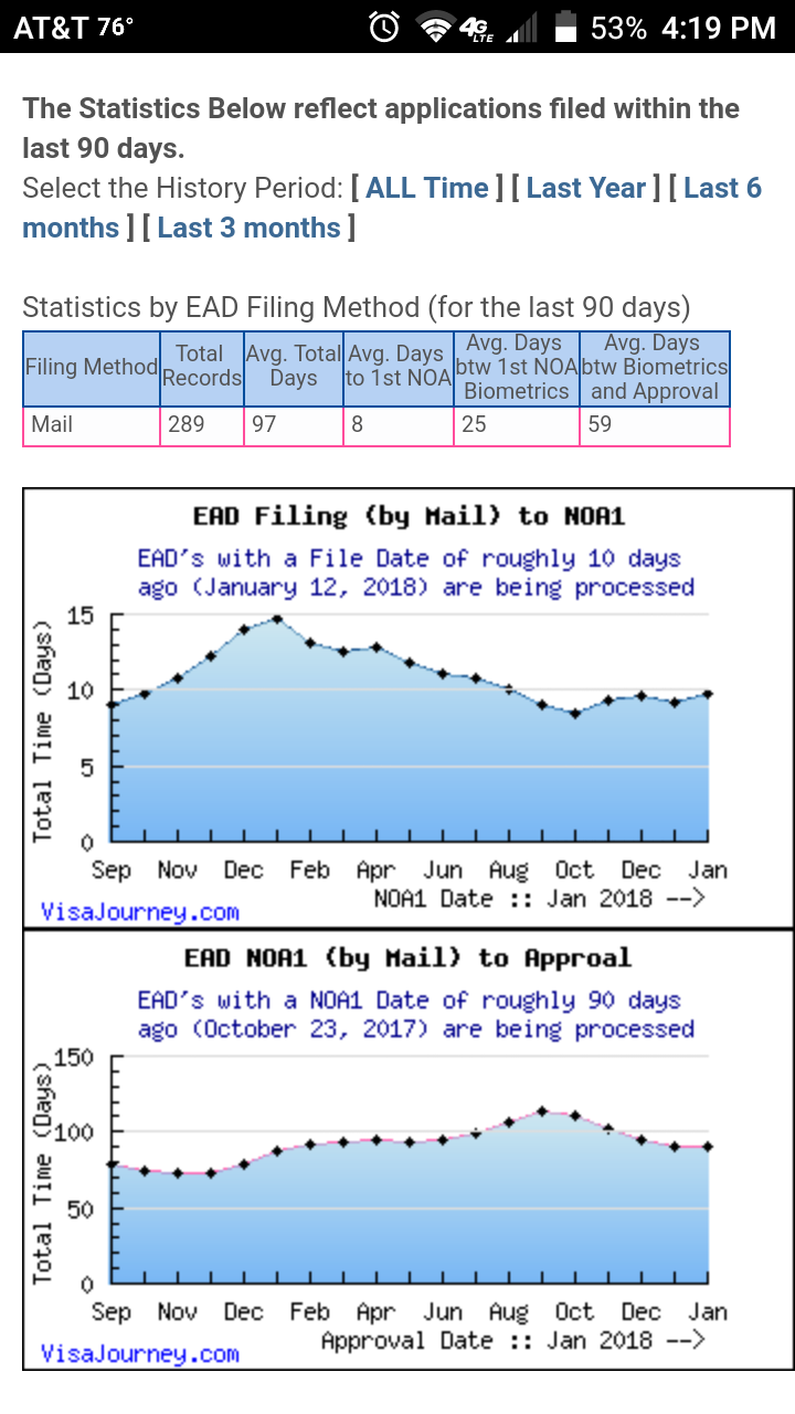 So after my fiance and I marry and file for adjustment of status and EAD. We can expect to receive the EAD around 97 days, as per the chart on bottom which reflects the last 90 days.