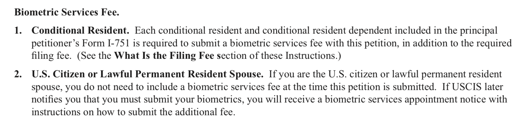 I'm not really clear on if I need to include a biometric fee. My wife is a US citizen so does 1. or 2. in the attached image apply to me?
