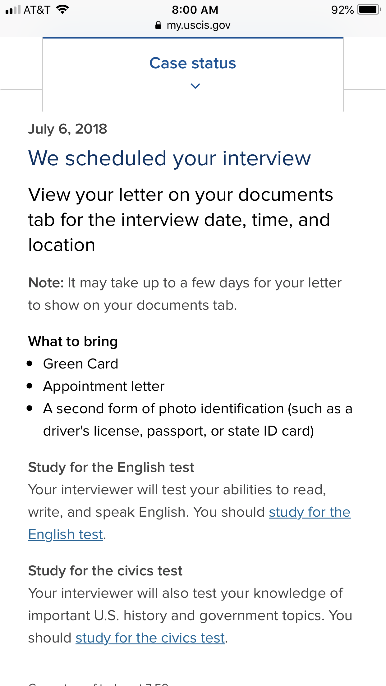 Hi, everyone does anybody know how long until interview letter gets uploaded? Yesterday I received text message and today my uscis account updated too, but documents tab doesn’t show interview letter yet, thank you guys