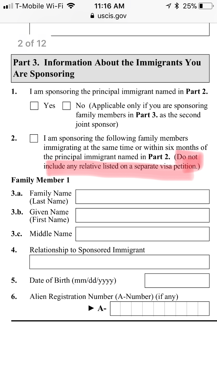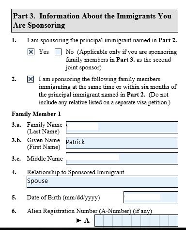 My question is for Part 3, Information about the Immigrants you are sponsoring.