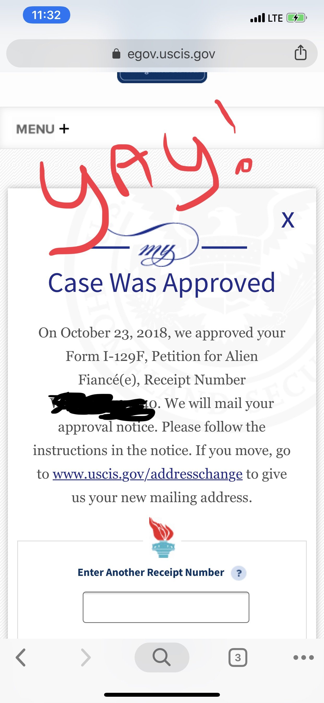 Thank you!! Actually the notice was from snail mail with notice date of 10/16 so it took five days for my hubby-to-be. No update from old and new site even the tracker app. So when i received the chat of my fiancée that we got the mail i was shouting “omg omg” at work 😂