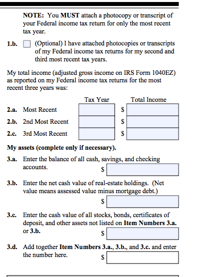 Part 4 it says to include 3 years of income and I've done this. in the instructions it says this - NOTE: you MUST attach a photocopy or transcript of your federal income tax return for only the most recent year.   Have any of you had success with this? or did you need 3 years?