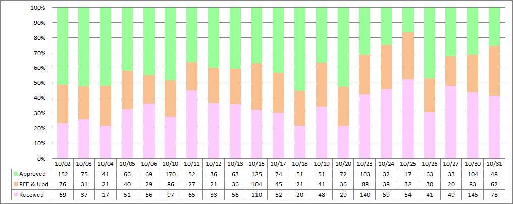 Fair warning, I did have to guess at the start/stop cases of each Received date, so these are ever so slightly off from before, I think they are pretty close.