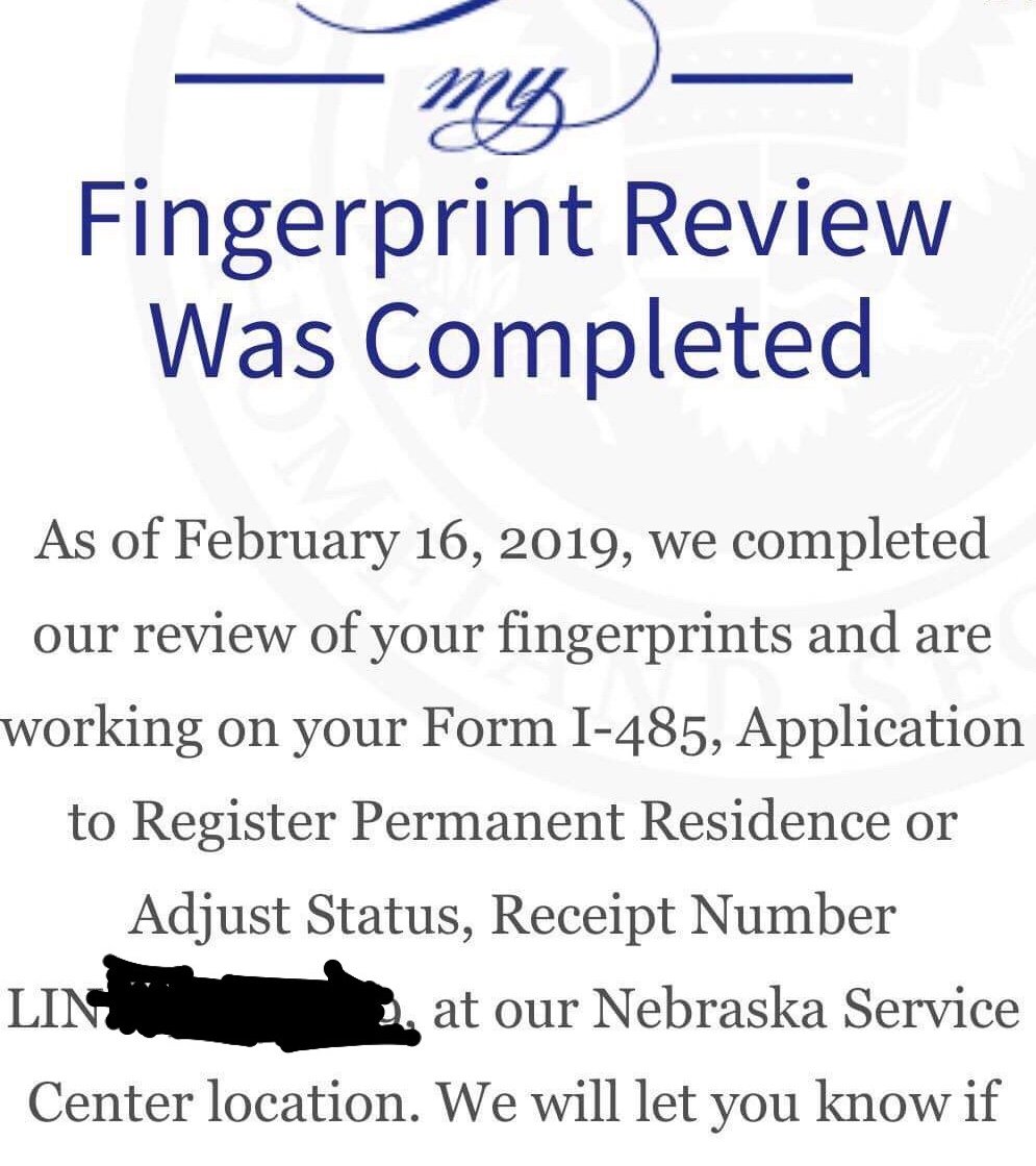 September filer here. Just to give a quick recap. We filed in September, received our extension letters in December and we did not have to do Biometrics. Today June 4th 2019 I received a text message and logged into my uscis account to get the following message. (see image)