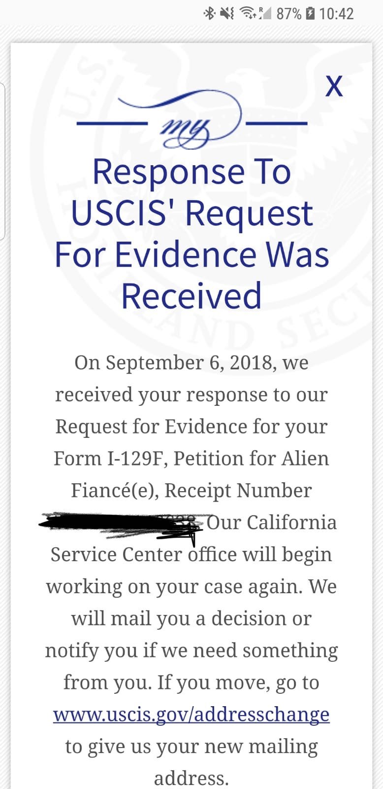 Old site updated today (or maybe yesterday?) that they received our RFE yesterday. New site still says the same thing it’s said for seven long months...case was received. Fingers and toes and everything else crossed that we sent back what they wanted and that it’s speedy!